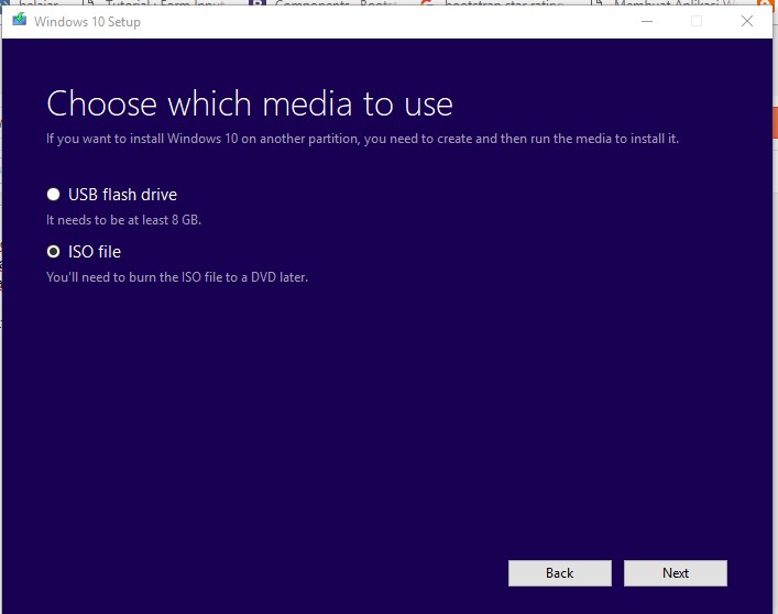 4. Pada tahapan selanjutnya anda akan diberi 2 option yaitu Upgrade this PC dan Creat Instalation Media (USB dll) for another PC. kemudian pilih option yang kedua. lalu klik Next