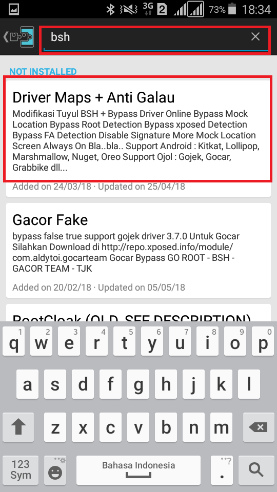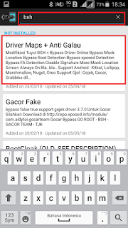 Untuk pemasangan Fake GPS tidak jauh beda dengan pemsangan DOTMOD, anda tinggal Klik Download Kemudian Ketikkan BSH atau Fake GPS, kemudian pilih fake GPS Yang anda inginkan dan instal , cara instal fake gps sama dengan penginstalan DOTMOD. dan setelah fake GPS anda intal jangan langsung di buka dulu karena kita harus Aktifkan DOTMOD nya terlebih dahulu pada Xposed