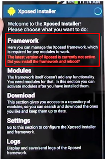 Instal Xposed Sesuai dengan versi android dan sesui type Hp kamu, kamu bisa download xposed pada XDA Form dan mencari versi yang sesui dengan HP kamu. Setelah terinstal silahkan install framework lewat Xposed.
