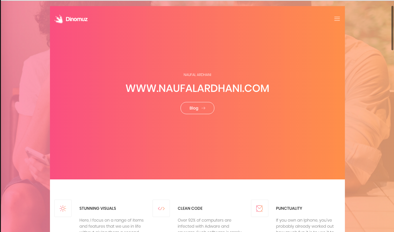 Download Script Website Dinomuz Template Personal Free [ HTML ] – Oke guys kali ini saya akan membagikan Script Website Dinomuz, Script Dinomuz ini cocok untuk Website Personal jadi bagi yang sedang mencari script web personal anda bisa pakai ini, atau juga web bussines / bisnis saya hanya melakukan sedikit recode dan perubahan di script ini karna memang sudah bagus juga scriptnya jadi ya gausah di apa apain lagi :v