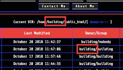 1. Akses Shell Backdoor anda dan cek usernya [ user web yang saya pakai ada building ], disini saya menggunakan Noname Shell Backdoor