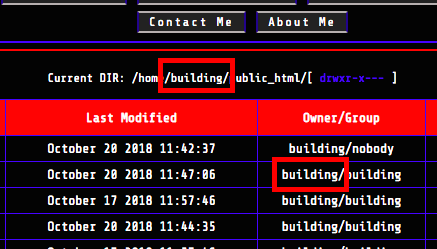 1. Akses Shell Backdoor anda dan cek usernya [ user web yang saya pakai ada building ], disini saya menggunakan Noname Shell Backdoor